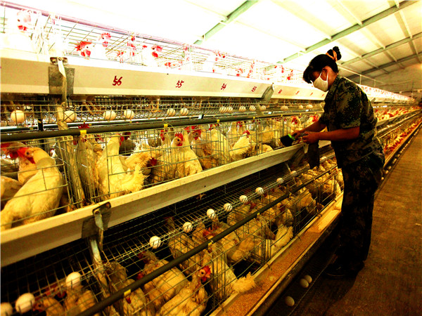 肥城生態(tài)園雞舍員工勻料